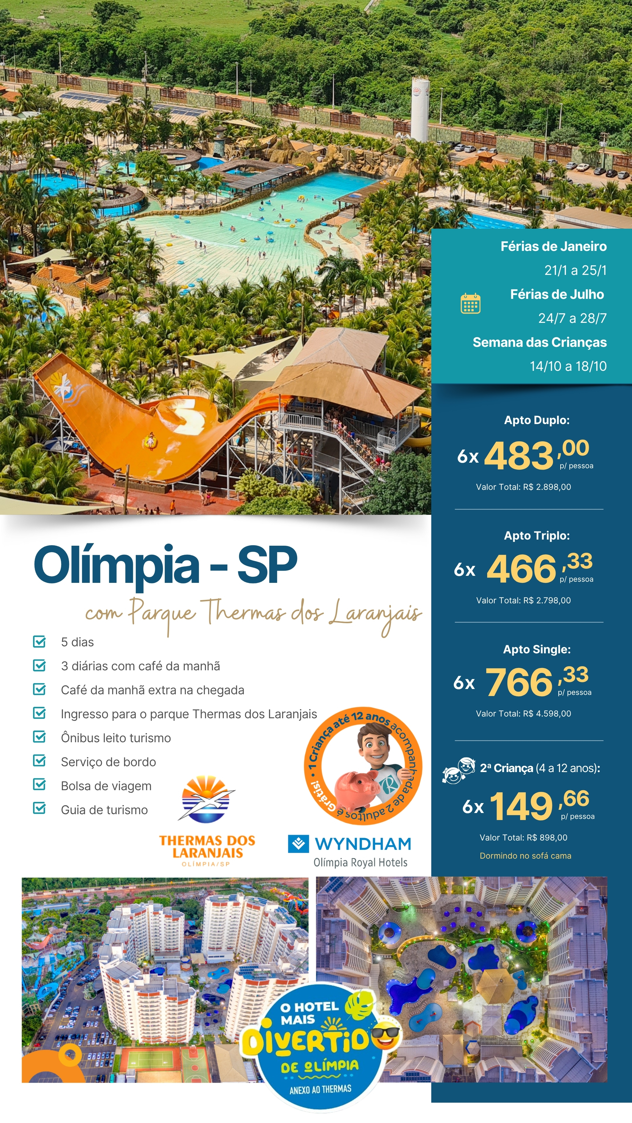 • Acesso aos parques da rede (conforme hotel escolhido)